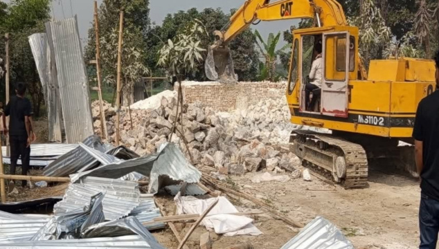 চুনা কারখানাগুলোর অবৈধ স্থাপনা এক্সকেভেটর মেশিন দিয়ে গুড়িয়ে দেওয়া হয়।